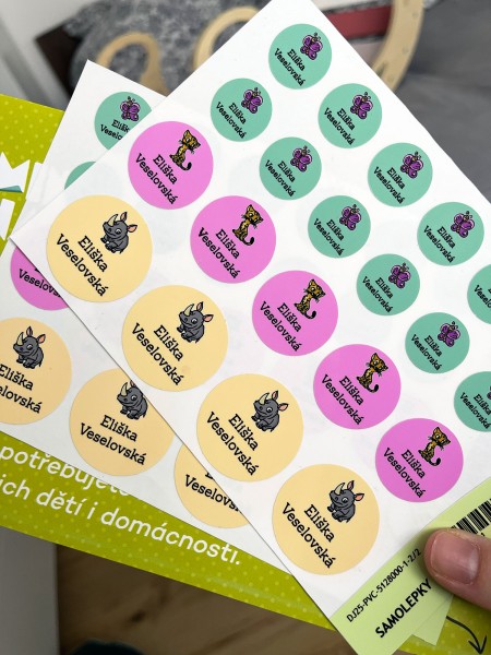Kulaté samolepky v různých rozměrech nabízejí široké možnosti využití doma, ve škole, školce nebo na cestách. Jsou vyrobeny z odolného a pružného materiálu, díky kterému si dlouhodobě zachovávají syté barvy i čitelnost textu.
